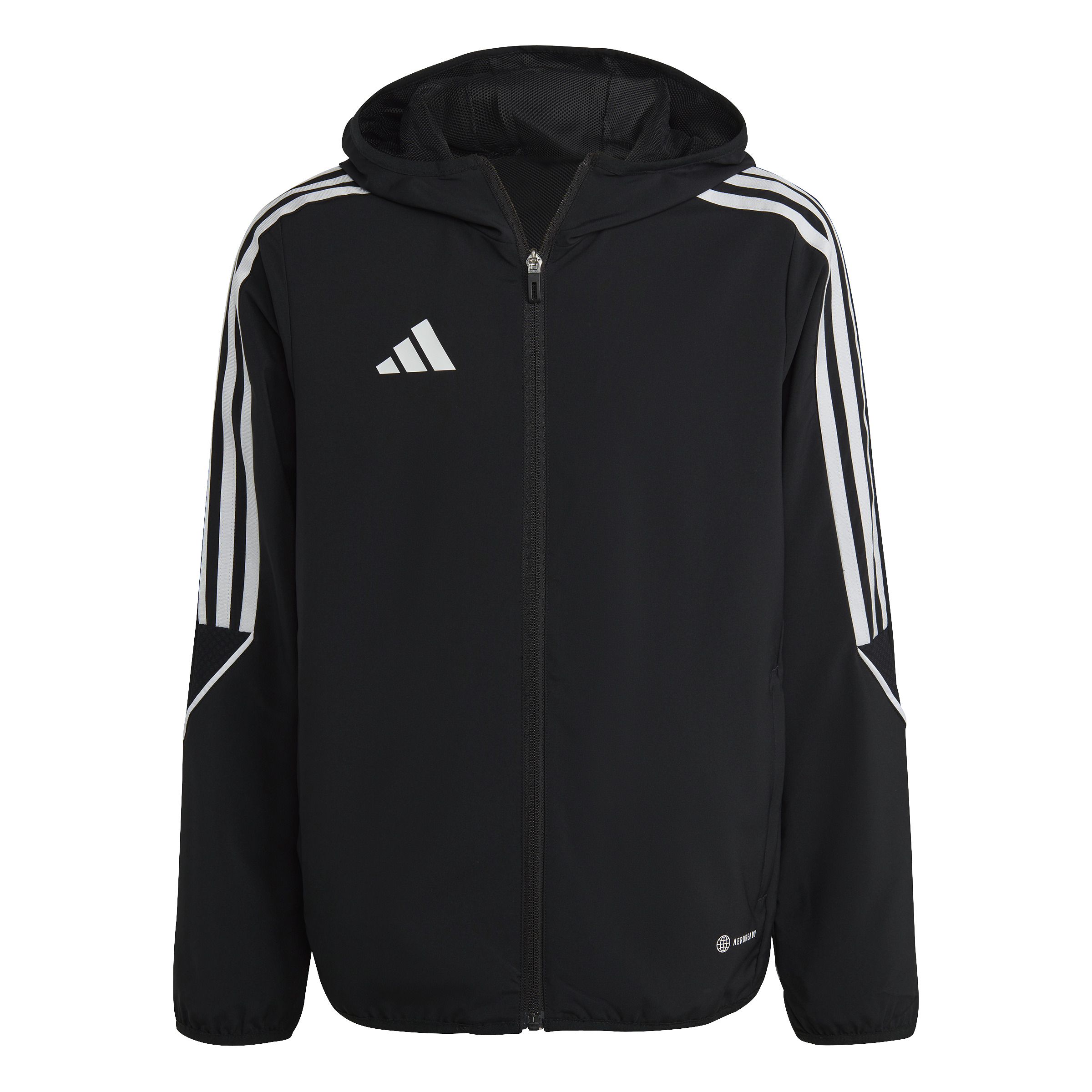 Správny futbalista nerieši, či zrovna svieti slnko alebo prší. Keď je čas hrať, tak sa ide na to. Túto futbalovú bundu adidas Tiro 23 League nosia hráči v nepriaznivom počasí, protože je vyrobená z vodeodolného tkaného materiálu a má elastické manžety. Ďalšiu ochranu pred dažďom ponúka praktická kapuca so sťahovacou šnúrkou.