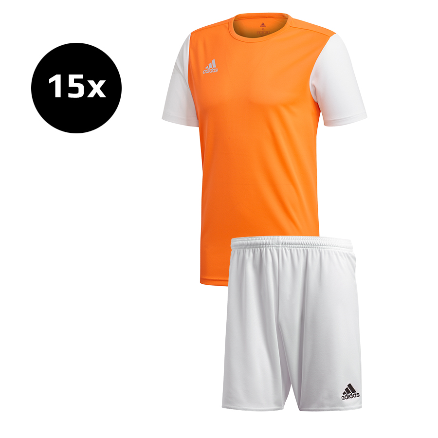 Sada, ktorá obsahuje 15x dres Estro 19 a 15x trenky Parma 16. Veľkosti je možné kombinovať. Kombináciu veľkostí môžete napísať do poznámky v objednávke.